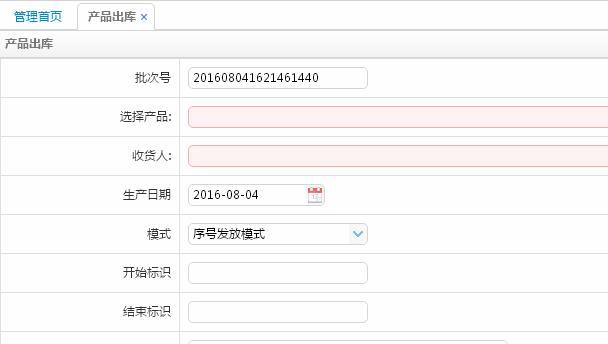 出庫管理主設(shè)定溯源信息的重要環(huán)節(jié),選擇產(chǎn)品,選擇收貨人,生產(chǎn)日期可以更改。