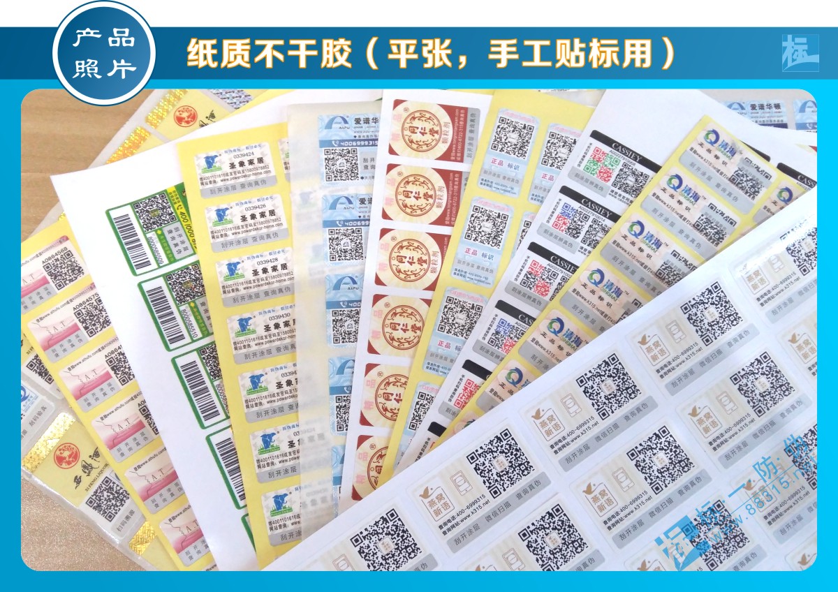 以上為紙面不干膠材料防偽標(biāo)簽(適用于手工貼標(biāo))