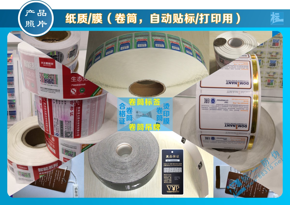 以上為紙面不干膠材料卷筒防偽標(biāo)簽及卷筒吊牌等