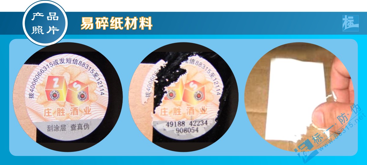 易碎紙不干膠標(biāo)簽其面料斷裂強(qiáng)度遠(yuǎn)低于膠粘劑粘合能力,它具有粘貼后不能完整剝離、不可再利用的特點(diǎn)。易碎紙不干膠面材經(jīng)印刷﹑模切等工序加工后,制成易碎標(biāo)簽或易碎貼,也稱商品易碎質(zhì)保貼,也可以用它來(lái)制作各類電碼防偽標(biāo)簽或二維碼防偽標(biāo)簽,從而提升其防偽性能。