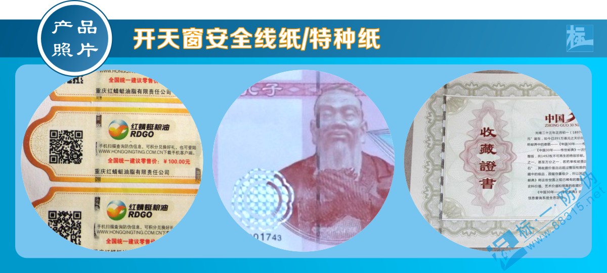 防偽標(biāo)簽可使用的材料還很多,也包括其他各類特種紙。