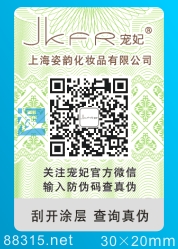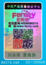化妝品防偽主要措施是在其包裝上加貼防偽標簽,其防偽標簽可根據(jù)產(chǎn)品價值、品牌價值及市場情況使用適宜的品種,目前市場上主要采用的有:激光防偽、不干膠數(shù)碼防偽、隱密型防偽等防偽技術(shù)結(jié)合防偽印刷工藝。
